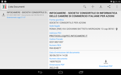 "RI QR Code" è un'applicazione gratuita delle Camere di Commercio italiane che, attraverso il QR Code, consente l'accesso in mobilità alla copia digitale del documento, come ulteriore garanzia di autenticità e ufficialità.