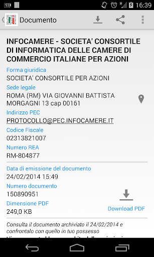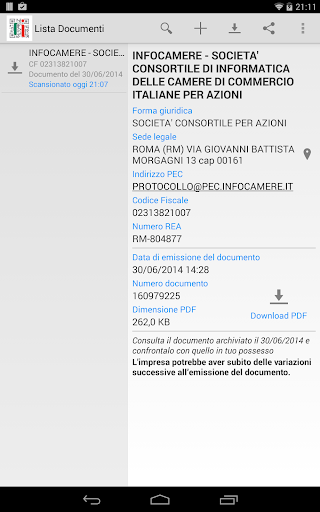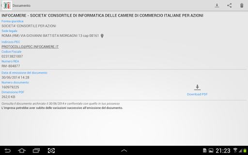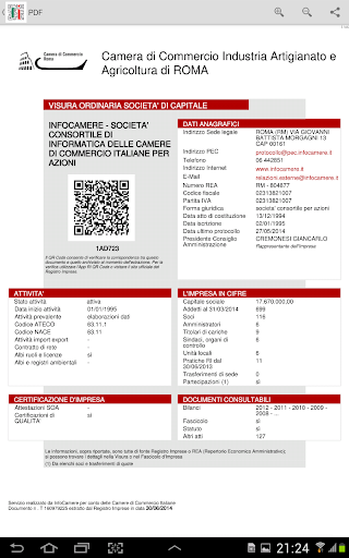 Per le note legali, le condizioni del servizio e per maggiori informazioni consultare http://www.registroimprese.it.