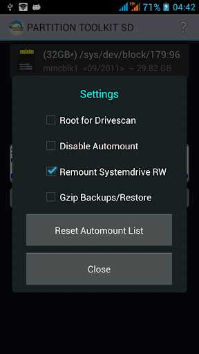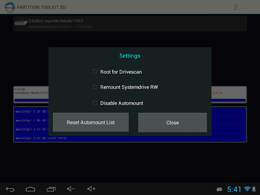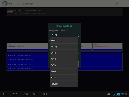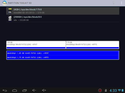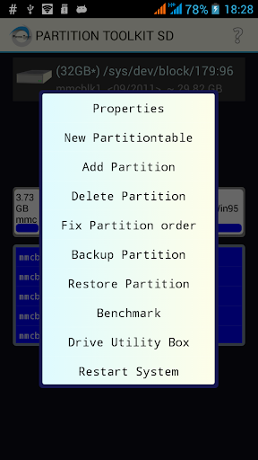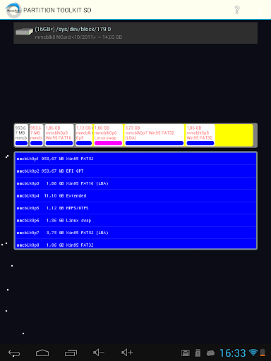 FDISK based build-in MMC and USB (no rom emmc and no nand!) Partition Manager and Filesystem Utility for Android SD Cards and Harddisks.This is more than a Partition-Manager.You can also Create Partition Image Backups ala Partimage.
