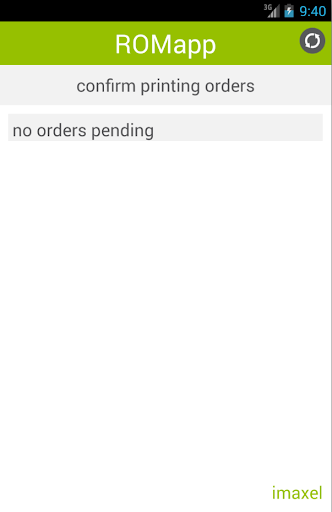 La app funciona asociada al sistema backoffice Retail Order Manager (ROM) de Imaxel y permite que al operador del comercio aceptar o cancelar pedidos desde un dispositivo movil sin tener que acceder a la pantalla de control del panel de impresión.