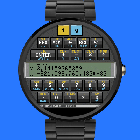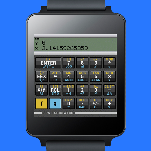 RPN Calculator is a powerful scientific calculator with the look and feel of a classic Hewlett-Packard calculator. RPN Calculator was designed from the start for the Moto 360's round screen and chin. The calculator's display is positioned in the center of the screen for best viewing on a round screen and the keys are arranged in a logical order around the display. Not only is RPN Calculator a powerful problem solver, it looks great too.