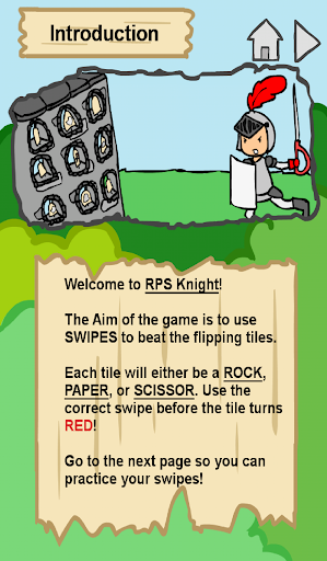 You play as our hero, a knight who wields his weapons made of rocks, papers and scissors! Help him train by reacting to fast flipping tiles, but don't get confused!