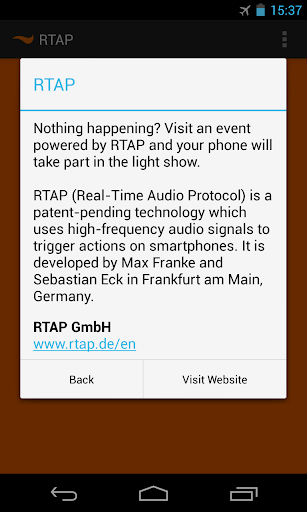 RTAP (Real-Time Audio Protocol) is a patent-pending technology which uses high-frequency audio signals to trigger actions on smartphones. It is developed by Max Franke and Sebastian Eck in Frankfurt am Main, Germany.