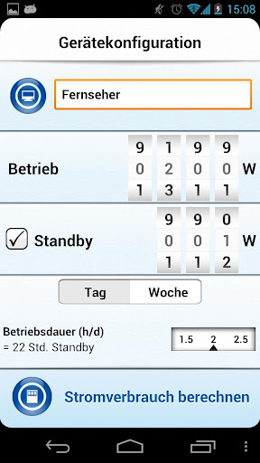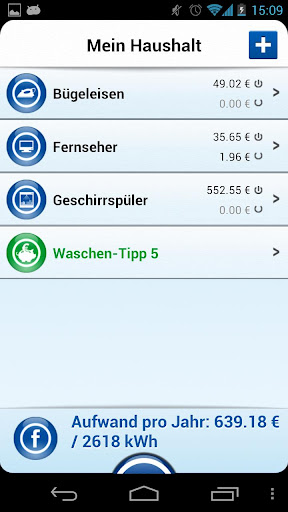 Via App können Sie eingeben, wie lange Ihre Haushaltsgeräte pro Tag aktiv und im Standby genutzt werden. Dadurch ergeben sich die Kosten pro Gerät am Tag, Monat und Jahr. Rund 20 Geräte und ihre durchschnittlichen Werte sind bereits definiert, weitere Geräte können hinzugefügt werden. Via Facebook lassen sich der Gesamtstromverbrauch und die damit verbundenen Kosten vergleichen.