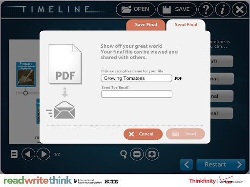 Users can send their finished timeline to their device’s camera roll or email it as a .pdf file to friends and family.