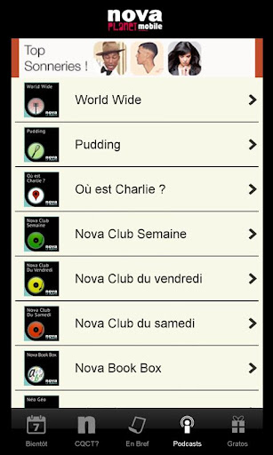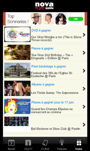 - Les gratos, pour participer aux jeux de l'antenne où que vous soyez et gagner des places de concerts, des livres, des DVD etc.