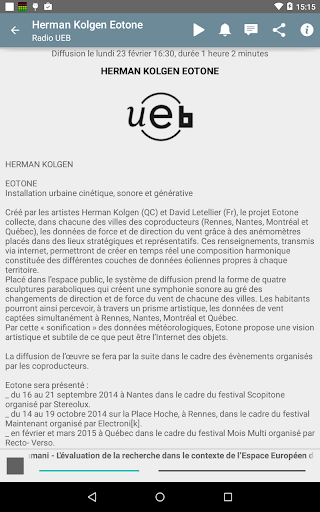 L’Université Européenne de Bretagne (UEB), c’est 23 établissements, 72 000 étudiants, 2 700 doctorants, 8 500 personnels dans la recherche, 149 laboratoires. Ecoutez sa Wikiradio ! Avec la Wikiradio UEB, c’est vivre l’effervescence des campus, la passion du savoir avec une ouverture sur le monde !