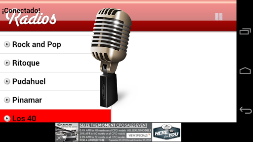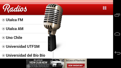 Escucha radio por internet desde un solo lugar, con Radios Chilenas tienes a tu disponibilidad las principales radios de Chile en tu Smartphone. Con esta aplicación puedes sintonizar las mejores emisoras Emisoras nacionales y regionales de Chile. Escucha tus radios preferidas sin necesidad de tener un receptor FM.