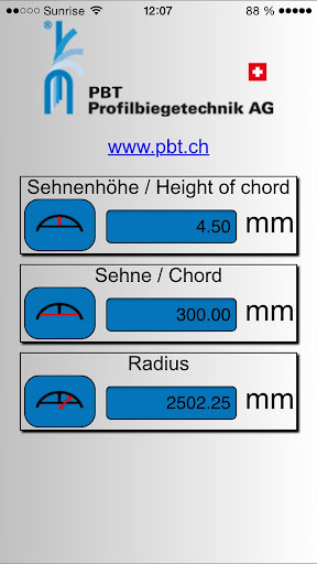 Mit dieser App ist es möglich den Radius anhand der Sehne und Sehnenhöhe zu berrechnen.