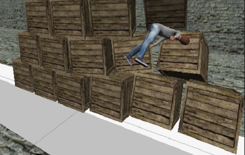 Destroy towers.You control ragdoll body and you target is hit as many boxes as possible