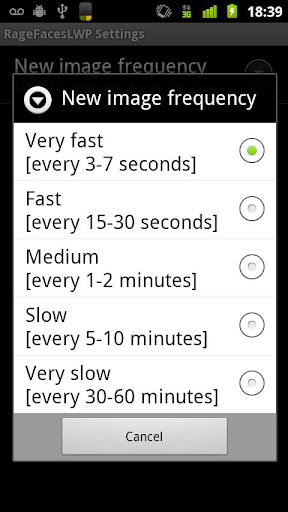 You can adjust the settings to change the frequency at which the wallpaper changes, anywhere from Very Fast [every 3-5 seconds] to Very Slow [every 30-60 minutes]. The wallpaper also supports multiple screen sizes and orientations; I even tested it on a friend's Galaxy Tab.