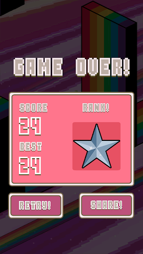 Rainbow Dash is an addictive arcade style game were your goal is to avoid the oncoming rainbows! Enjoy the challenging, 3 Dimensional experience with very simple controls. New additions to the game include brand new sound effects, better performance on every device, revised main menu and so much more!