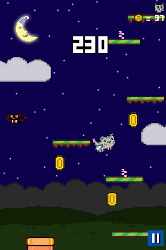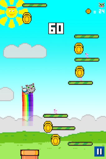 Flappy Cat returns in an all new platform-bouncing adventure to the end of the rainbow! Tilt the screen to move left and right and climb the levels to reach the rainbow. Collect coins for bonus lives along the way and bounce off the hungry worms for a boost. Take a shortcut through the warpy pipes but mind you don't go through the wrong way!