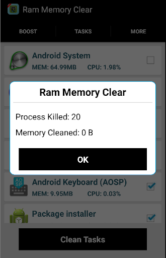 Ram Memory Clear Another comparable all-in-one Android optimization tool is Ram Memory Clear, which comes with a Trash Cleaner for Ram Memory Clear cache and junk file cleaning, a one-touch accelerator, app manager, antivirus, a privacy advisor and built-in internet speed test. Again, the benefits of task-killing with accelerators are dubious, Ram Memory Clear junk file / cache cleaner is a great way to free up internal storage space, and the app manager and other tools are also solid extras. Ram Memory Clear