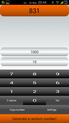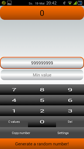 - Click on the button called "Generate a random number!" to generate a random number which will be displayed in the orange text field on top of the app.