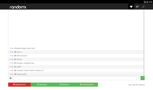 Randomi on helppo tapa löytää juttuseuraa tylsiin hetkiin. Randomi antaa sinulle satunnaisesti valitun palvelumme käyttäjän ja aloittaa yhteyden tämän kanssa. Keskustelut ovat täysin anonyymejä, joten kumpikaan ei tiedä kuka toisessa päässä oikeasti on. Valitse sinulle sopiva chat ja hämmästy seurasta!