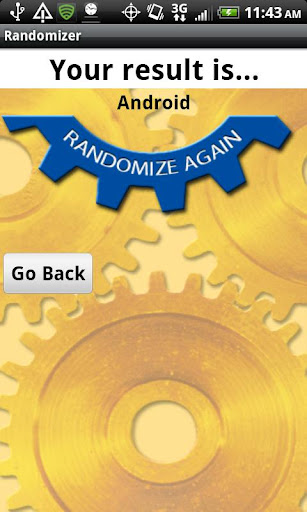 Step 3) Simply shake your phone or press the big "Randomize!" button to submit and receive your result!