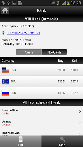 Using this app you will get information about the latest exchange rates, find the bank or exchange point offering the best exchange rate, locate nearest branch with the contact info, and many other useful information! If you are doing business, hourly track cash and non-cash exchange rates and accordingly react on rate fluctuations. The online version of the application is the most popular business web site in Armenia, with more than 10,000 visitors per day.