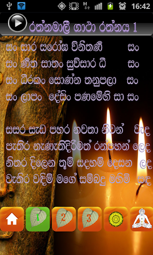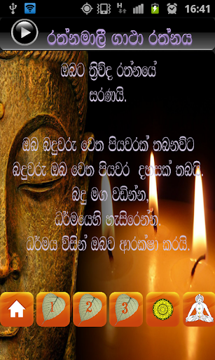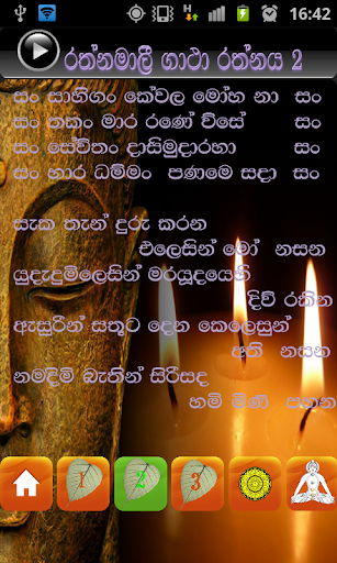 This app contains a set of very powerful Rathnamali gatha. During the era of King Dutugamunu this gatha was being recited for the safety. This gatha yantraya was hidden in the king’s hair which had protected him. By reciting this gatha you can approach the success in your day to day activities. Always recite the word of Lord Buddha and live your life according to that may your life prospers with success and good health.