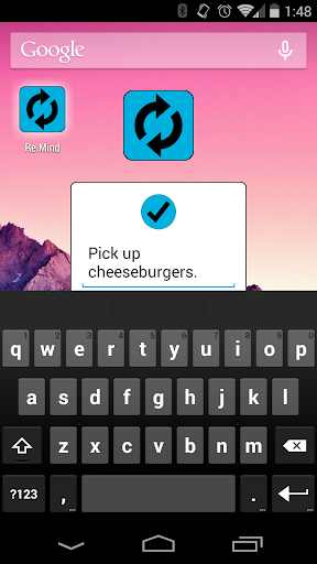 Re.Mind takes ideas, tasks, and other input from you and places them in the notification drawer of your device. You can quickly enter new reminders through the simple Re.Mind interface using your voice or text. You can also share text and links directly to Re.Mind from other apps.