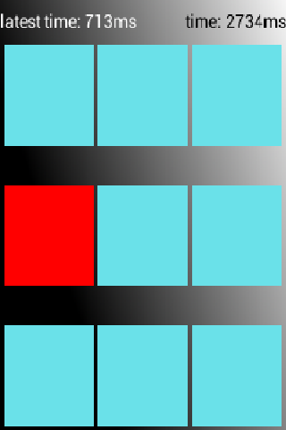 The App colores on random field of 9 fields red and take the time how fast you clicked on it.