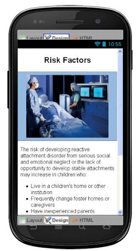 This app contains reactive attachment disorder diseases information for knowledge if you need to apply then please contact to nearby doctor. Useful information but is not a substitute for professional medical advice, diagnosis or treatment. If you think you may have a medical emergency, immediately call your doctor or the emergency services. Before acting on any of the information in this application, consult with your doctor to make sure that it is right for you.