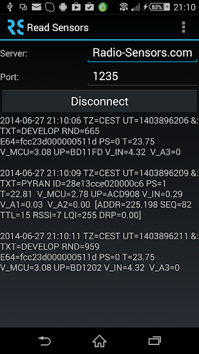 Read Sensors is an Android app to monitor, view and plot sensor data. It implements a lightweight tag-based protocol proposed by the sensd WSN gateway. The concept is simple and flexible. Connect to a TCP port and listen to senors data, parse/select and view or plot.