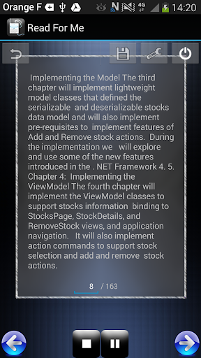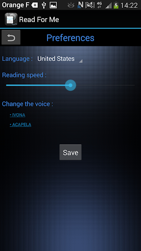 "Read for me" allows you to get a voice reading the documents available on your phone (.Pdf, .Txt, .Html ...).