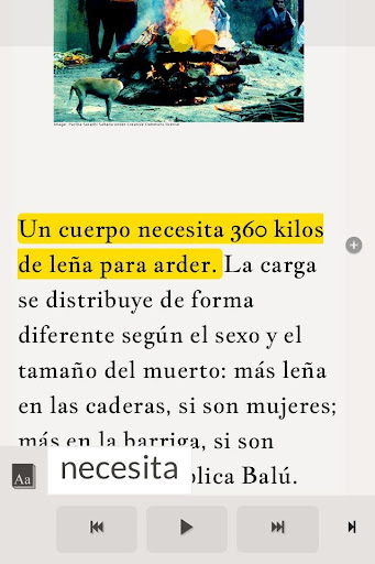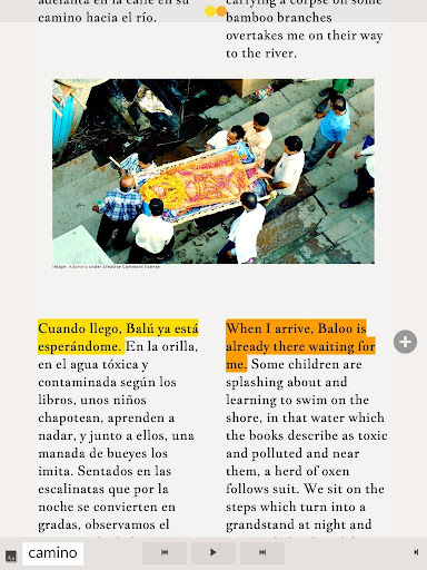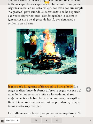 This chronicle, ‘Varanasi, mujer y cadáver’ is in Dubbuk format. You know: if you don’t understand a sentence, touch it and get the Spanish integrated translation.