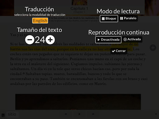 Books in Dubbuk format incorporate a new technology that allow you to read in Spanish in a comfortable and fluent way, as it integrate text, professional translation, audio and bilingual dictionary.