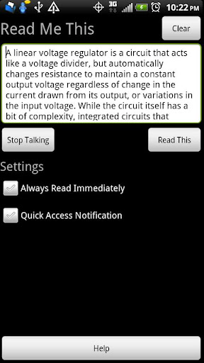 The app provides a notification icon for quick access as well as the ability to start reading immediately after you select the service from the Share Via menu.