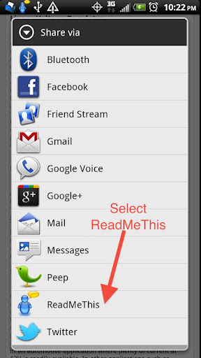 NOTE about Gmail: The version of Gmail I've tested with does not show the Share Via option when you select text in an email. You can copy/paste into ReadMeThis though.