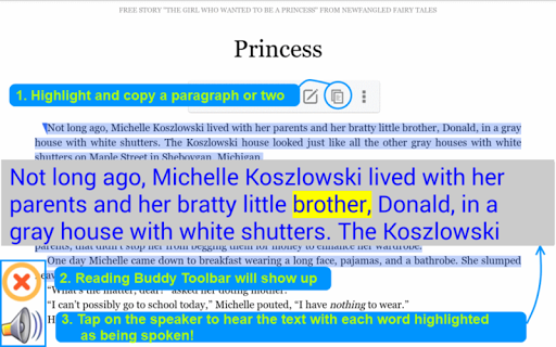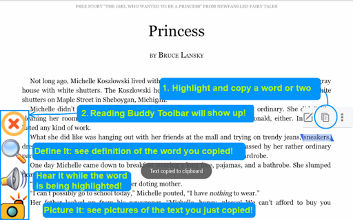 It’s very simple. Once you start the Reading Buddy App, it runs in the background. If you can copy text, you can use the Reading Buddy! Here is how it works: