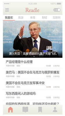 Readle是一款个性化阅读的app,它能够让你订阅您喜欢看的文章和新闻。