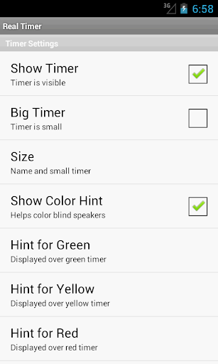You know that timing a speech can be a chore--look at the stopwatch until it's time to tell the speaker. I've heard many speeches that captured my attention so completely that I failed as timer. Real Timer simplifies the task. It's as easy to use as a stopwatch, but does more! The app will automatically change color at the precise time the speaker needs notification. All of the speeches are summarized in the History. You can have limits from 15 seconds to 23 hours 59 minutes!
