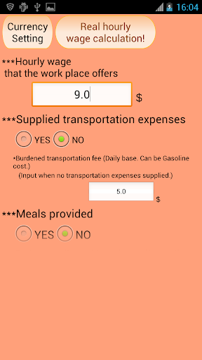 This is an app that calculates the real hourly wage merit for part-time jobs, considering the initial expense, transportation expenses, commuting time, and meals, as well as the hourly wage that the work place displays.
