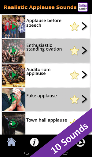 ★ 10 realistic sounds: Applause before speech, Enthusiastic standing ovation, Auditorium applause, Fake applause, Town hall applause, Crowd reaction at fireworks finale, Short crowd cheer, Sports crowd applause, Kids cheerleading, and Single clap.