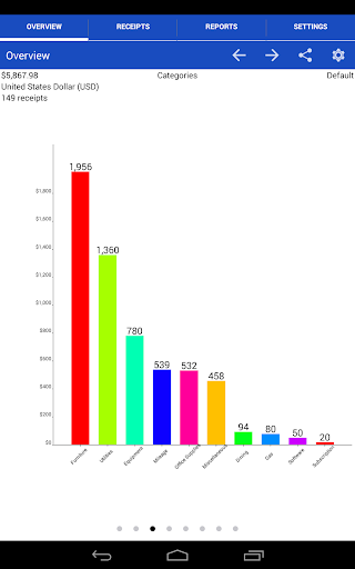 Generate Excel, PDF, HTML, and CSV reports with attachments. Optionally embed photos and drawings in PDF reports. Specify report names and add custom headers. Select which receipt fields to include and sort/group receipts by any field. Share reports using a variety of options including Box, CloudApp, Dropbox, Evernote, and Google Drive.