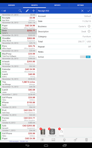 Track your personal and business income / expenses (including mileage) with Receipts. Receipts is the most customizable and powerful expense tracking app available. Create budgets, accounts, categories, filters, and nine different types of custom receipt fields. Receipts helps you save time when submitting expense reports and during tax season.