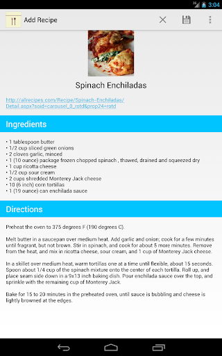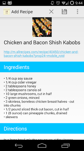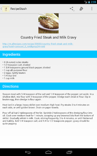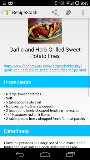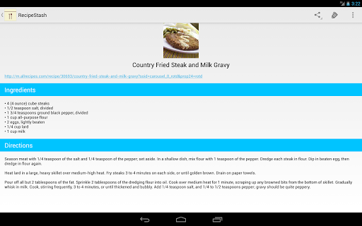 RecipeStash saves and allows you to organize your favorite recipes from several large sites. You can organize your recipes by tags, share your saved recipes, or even access them offline. Don't see your favorite site? Request it by attempting to add a recipe from it within the app.
