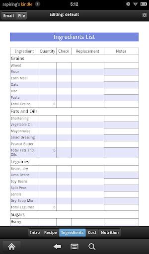 The Nutrition Tracker sheet lets you track and record the nutritive values of the ingredients in your recipe. Provision has been made for you to record up to four main nutrients at the same time.
