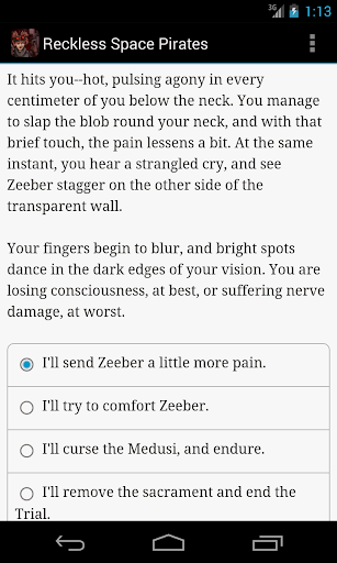 "Reckless Space Pirates" is a thrilling interactive science-fiction novel where your choices control the story. The game is entirely text-based--without graphics or sound effects--and powered by the vast, unstoppable power of your imagination.