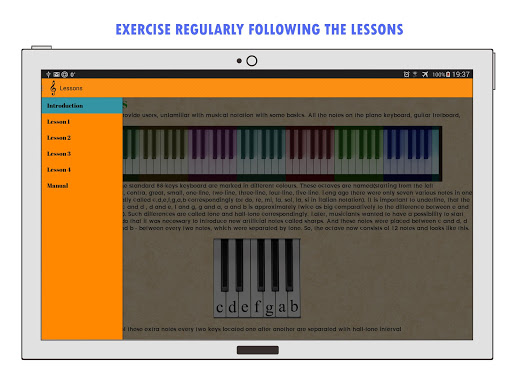 This software is designed to teach user to recognize notes and develop the "absolute pitch". This program uses real piano samples of extra high quality. The current version includes "recognize the note" mode, learning mode, customizable study programs, basic music theory and knowledge required for effective practice.