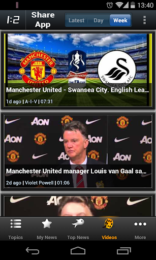 * Your very own news feed - Follow specific players (e.g. Wayne Rooney) or specific topics, like 'Transfers'. Just select the topics you want to follow and hit 'My News'.