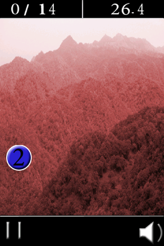 The buttons to be tapped have numbers within them. Each tap will bring the number down by 1 (5 to 4, 4 to 3, etc) and cause the buttons to reappear in a different location on the screen. Only when a 0 is tapped will you earn a point. You must reach the designated score for each level before time runs out.