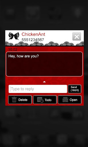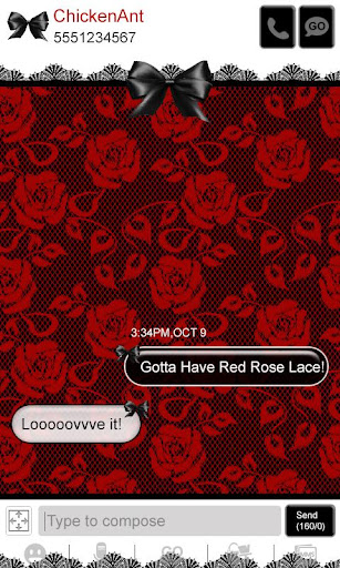 The Red Rose Lace Go SMS theme is super sexy! This elegant theme is draped in red rose lace with a shiny black bow to girl-ify your smartphone.
