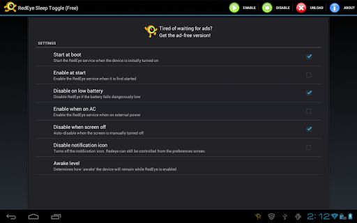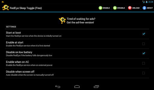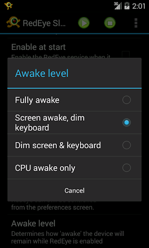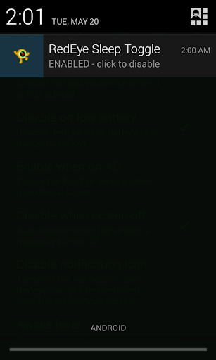 RedEye allows your phone or tablet to stay awake by preventing it from going into sleep mode regardless of whatever apps are also running. It allows you to quickly and easily turn on & off automatic sleep mode without having to dig through the configuration menus.