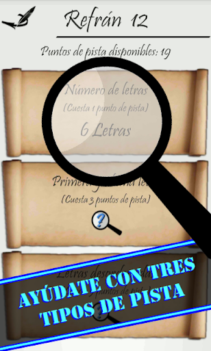 - Consigue puntos de pistas al desbloquear capítulos y completar refranes