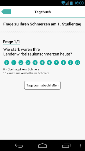 Diese Applikation ist eine Studien-App zu Entspannungsübungen bei Kreuzschmerzen. Sie ermöglicht Ihnen die Eingabe Ihrer Studien-Daten und unterstützt Sie optional durch Audios bei der Durchführung der Entspannungsübungen.