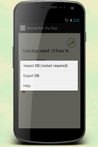If you ever looked back on a calendar and thought to yourself :"Yes, that day was a good day", or if you think that most diary apps are a bit too complicated, then this small app is the right one for you.